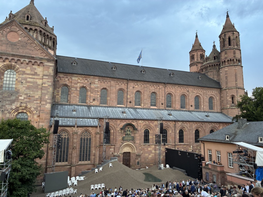 Roland Schimmelpfennig, einer der meistgespielten zeitgenössischen Dramatiker im deutschsprachigen Raum, hat mit „SEE AUS ASCHE – Das Lied der Nibelungen“ für die Wormser Festspiele eine wortgewaltige Theaterdichtung geschrieben, in der er die gesamte Geschichte erzählt: Von Siegfrieds Aufbruch in die Welt, von der Tötung des Drachens, der Erbeutung des Nibelungenschatzes und der Tarnkappe und von der Ankunft des Helden am Burgunderhof. Von Hagen von Tronjes Machtspielen und von den Schicksalen der Königinnen Kriemhild und Brunhild bis hin zum Untergang der Burgunder am Hof des Hunnenkönig Etzel. So entstand eine dichte, fast rauschhafte Reise durch das Lied der Nibelungen – eine Verbindung des alten Mythos mit der Kraft eines großen Fantasystoffes und der Gegenwärtigkeit unserer modernen Welt. Das Stück inszenierte Mina Salehpour, die zu den renommierten Regisseurinnen der deutschsprachigen und internationalen Theaterszene zählt und erfolgreich an führenden europäischen Bühnen u. a. in Oslo und Trondheim, dem „Dramaten“ in Stockholm sowie am Wiener Burgtheater, am Schauspiel Köln und dem Schauspiel Hannover inszeniert.